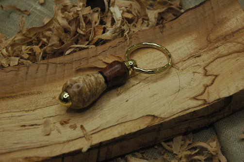 Porte-clés réalisé grâce à des chutes de bois provenant de la création des objets de l'Atelier du Vieux Tilleul afin de ne rien gâcher.
