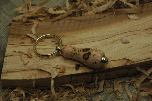 Porte-clés réalisé grâce à des chutes de bois provenant de la création des objets de l'Atelier du Vieux Tilleul afin de ne rien gâcher.