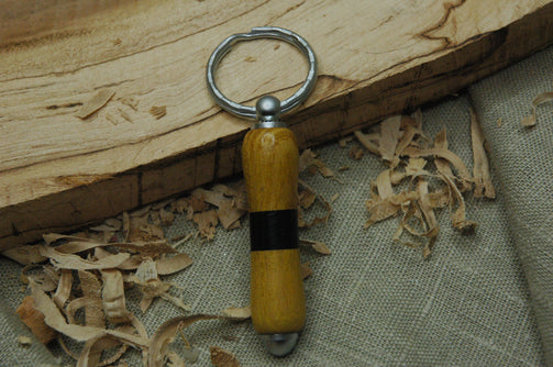 Porte-clés réalisé grâce à des chutes de bois provenant de la création des objets de l'Atelier du Vieux Tilleul afin de ne rien gâcher.