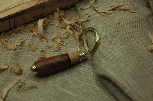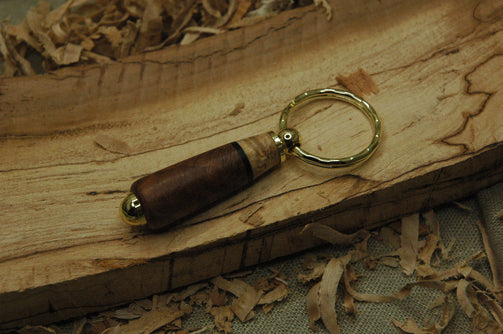 Porte-clés réalisé grâce à des chutes de bois provenant de la création des objets de l'Atelier du Vieux Tilleul afin de ne rien gâcher.