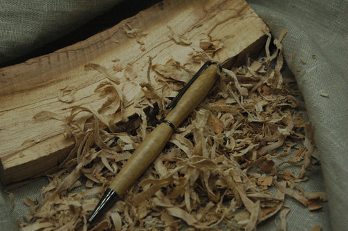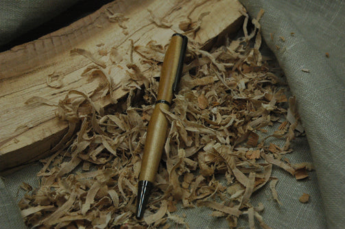 Un stylo réalisé en bois tourné à partir de bois de citronnier de Ceylan.