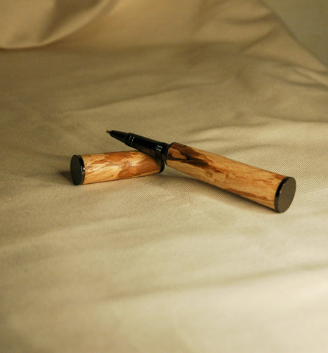 Stylo Roller en Pommier Echauffé clair tourné à la main et monté en France.