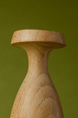 Tourné à la main au tour à bois, ce vase est conçu pour accueillir fleurs et herbes séchées — des compositions qui durent, à l'image du bois qui les porte.